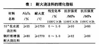 耐火澆注料熱穩(wěn)定性好,線膨脹系數(shù)比耐熱鋼小,但其耐磨性及其強(qiáng)度卻難以與耐熱鋼相比(耐火澆注料的理化指標(biāo)見表1)。以耐火澆注料代替耐熱鋼作退火爐軌道是否能滿足退火的需要呢?為此,做了如下試驗(yàn)。