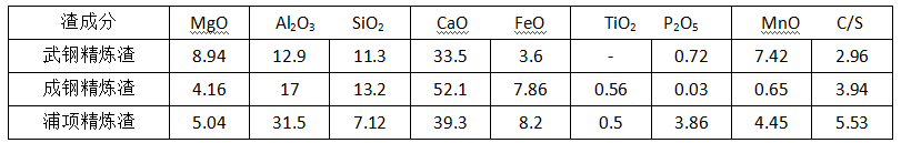 表2 不同鋼廠精煉渣化學(xué)成分 (W/%)
