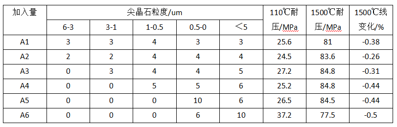 通過對同一組方中各尖晶石粒度加入量的改變,試樣在不同溫度處理后的性能指標(biāo)見表4。
