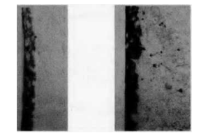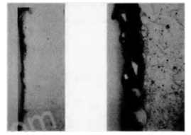 為此,韓國浦項(xiàng)就我們新研制的樣品,自行做渣和鋼水的侵蝕檢測對比,新研制的鋼包料渣和鋼水侵蝕結(jié)果如圖6所示,浦項(xiàng)公司鋼包料淹和鋼水侵蝕結(jié)果如圖7所示。