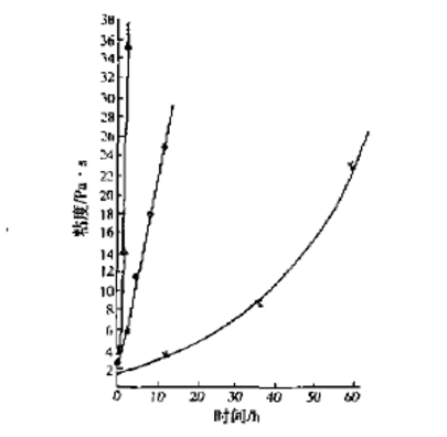 圖1 原配方膠體粘度與放置時(shí)間的關(guān)系