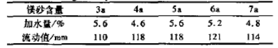 2.1 鎂砂細粉含量對鋁鎂質(zhì)澆注料流動性的影響