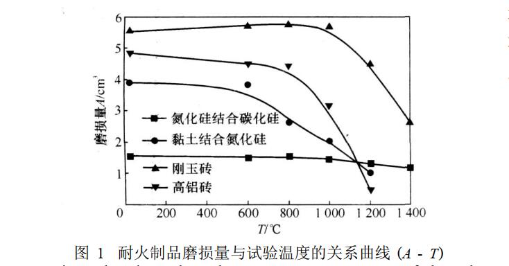 (2)1000 ℃時,氮化硅結(jié)合碳化硅磚比黏土結(jié)合碳化硅磚有更好的耐磨性。分析其原因可能是:氮化硅結(jié)合碳化硅磚中礦物相組成為碳化硅和氮化硅,這兩種礦物相的硬度高,強度大;而黏土結(jié)合碳化硅材料物相主要是碳化硅,還有少量莫來石和玻璃相,從礦物組成來看,顯然前者耐磨性更好。