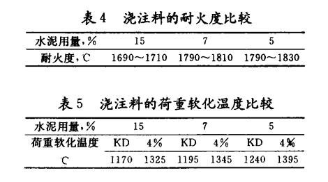 低水泥澆注料與普通澆注料都是以硬鋁酸鈣水泥結(jié)合的耐火澆注料,由于在配制低水泥澆注料時選用了合適的表面活性添加劑,氧化物超細粉以及合理的骨料顆粒級配,所以可以改變水泥的團粒結(jié)構(gòu),使之成為均勻的分散體,從而提高水泥的膠結(jié)作用,并顯著降低用水量;另外還可以改善孔結(jié)構(gòu),提高澆注料的強度。低水泥澆注料的水量由普通澆注料的10%~15%降到5%~8%,水泥用量也有15%~20%降到5%~8%。