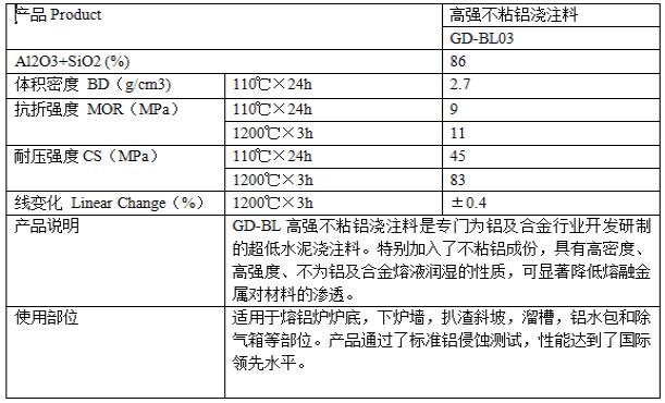 使用部位:高純鋁熔煉爐熔池、流槽、除氣過(guò)濾箱體。